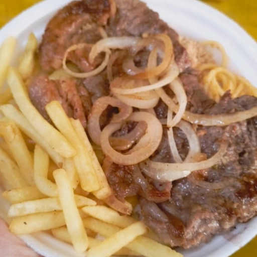 Frango à passarinho, batata frita, calabresa acebolada, sem parar de frango, aipim frito.
